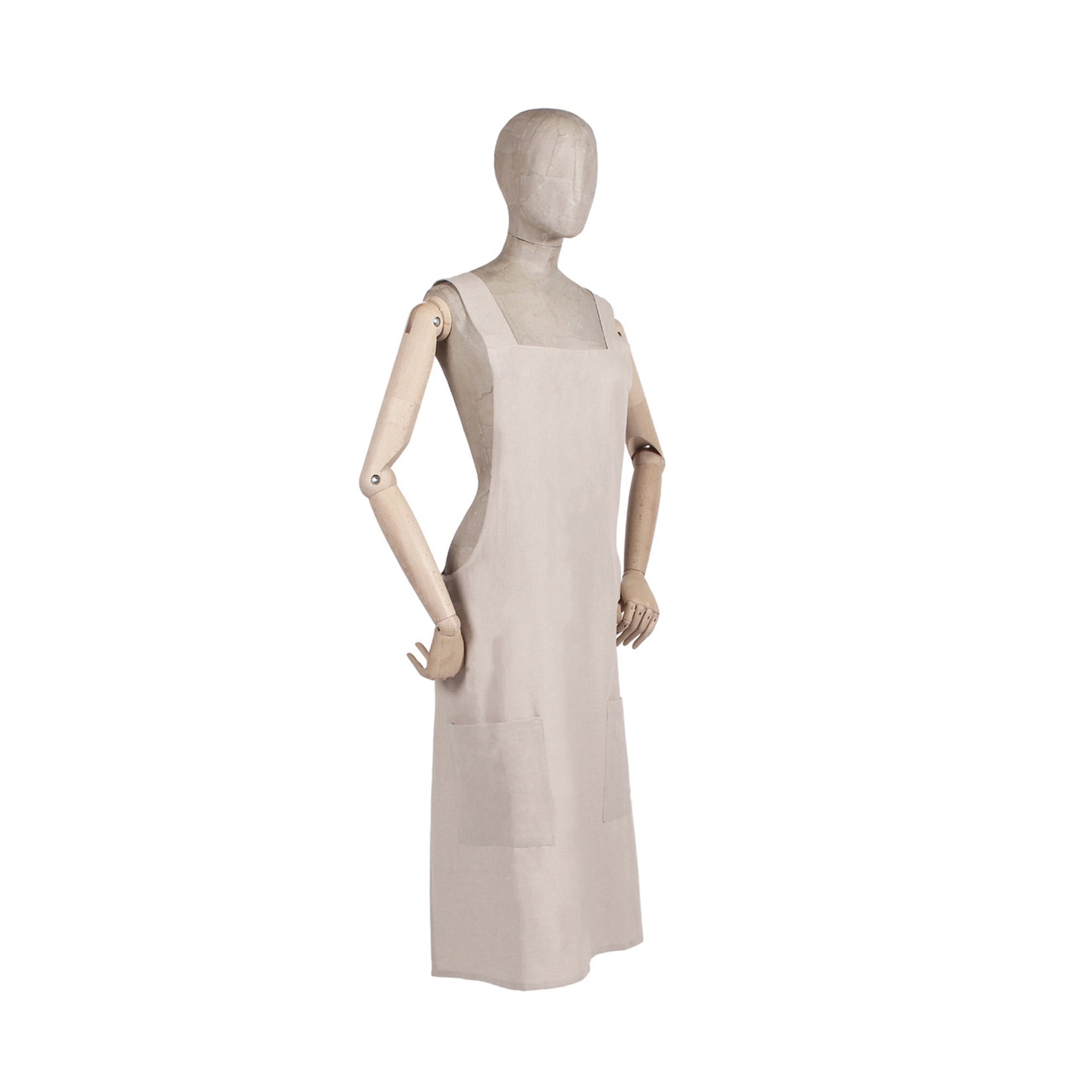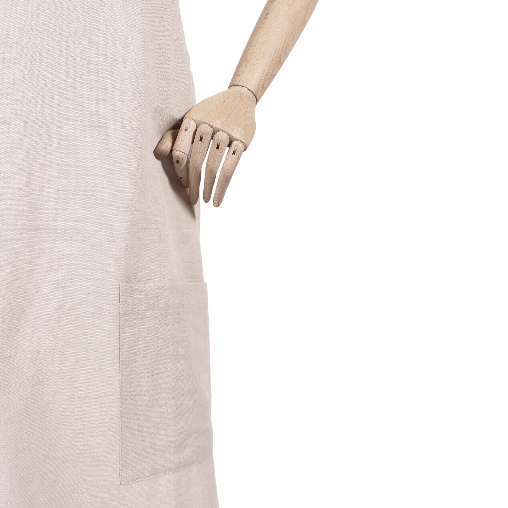 Linen/Cotton material, thick straps, cris cross open back detail and POCKETS.