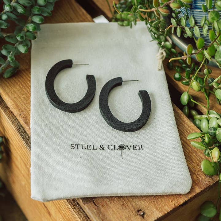 Clayhurst Wooden Hoop Earring - Black