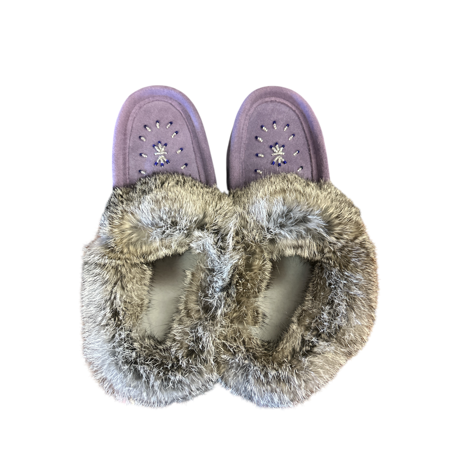Authentic Canadian-Made Rabbit Fur Trimmed Moccasins