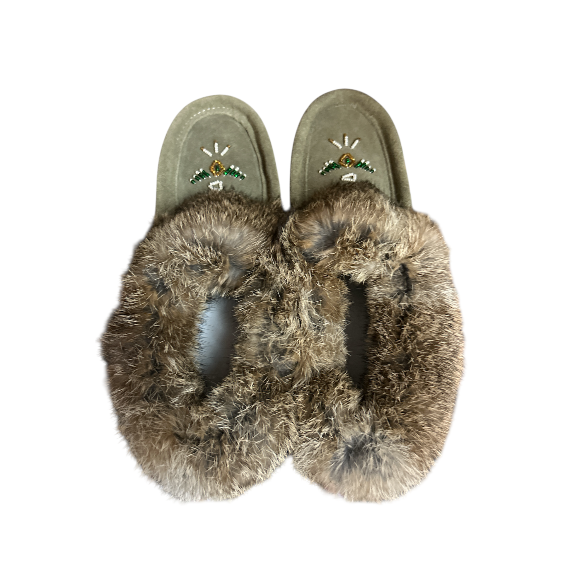 Authentic Canadian-Made Rabbit Fur Trimmed Moccasins