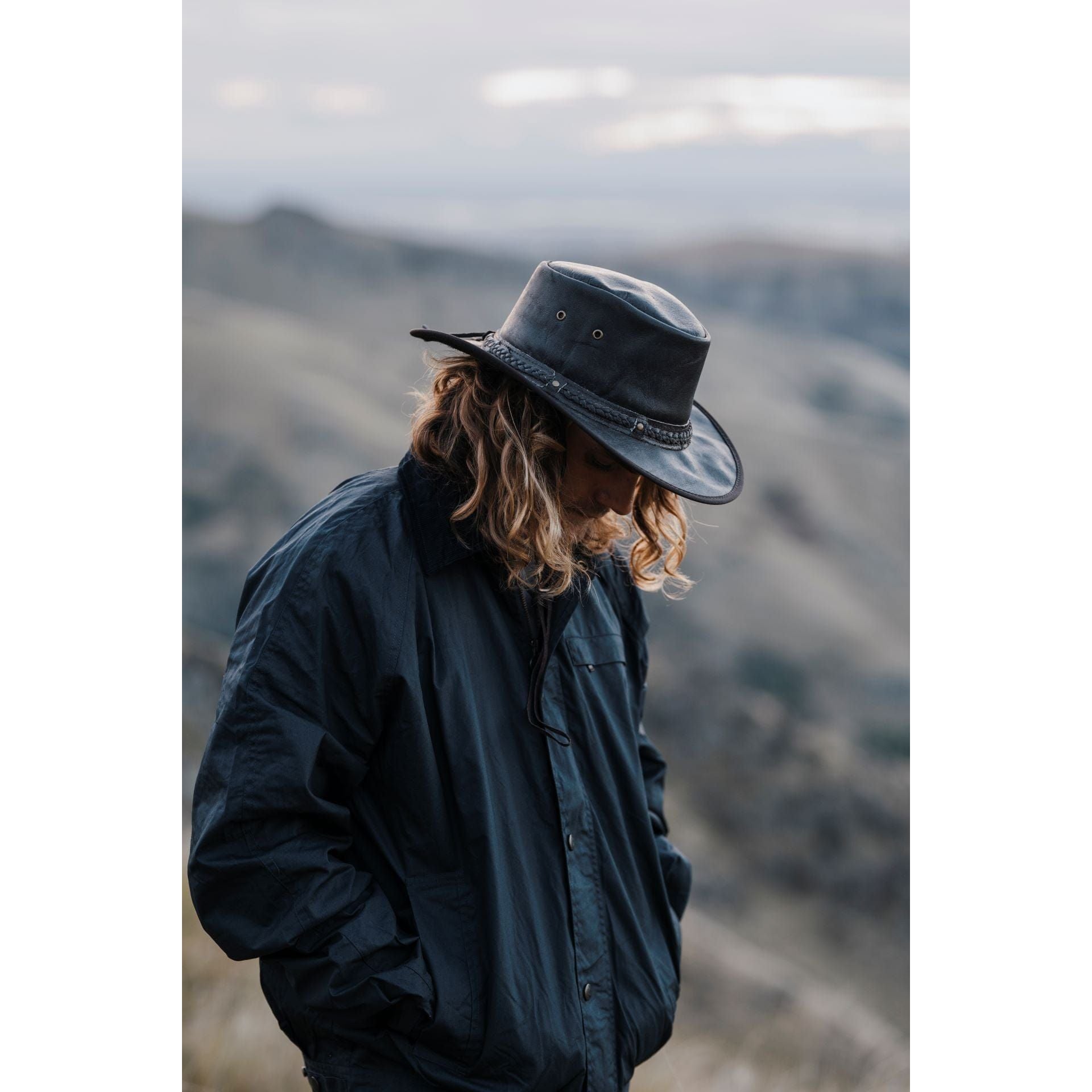 Made from 100% Leather with a simple braided band and brass details, The Iron Bark has a UPF 50 rating and breathable air vents to keep you cool.