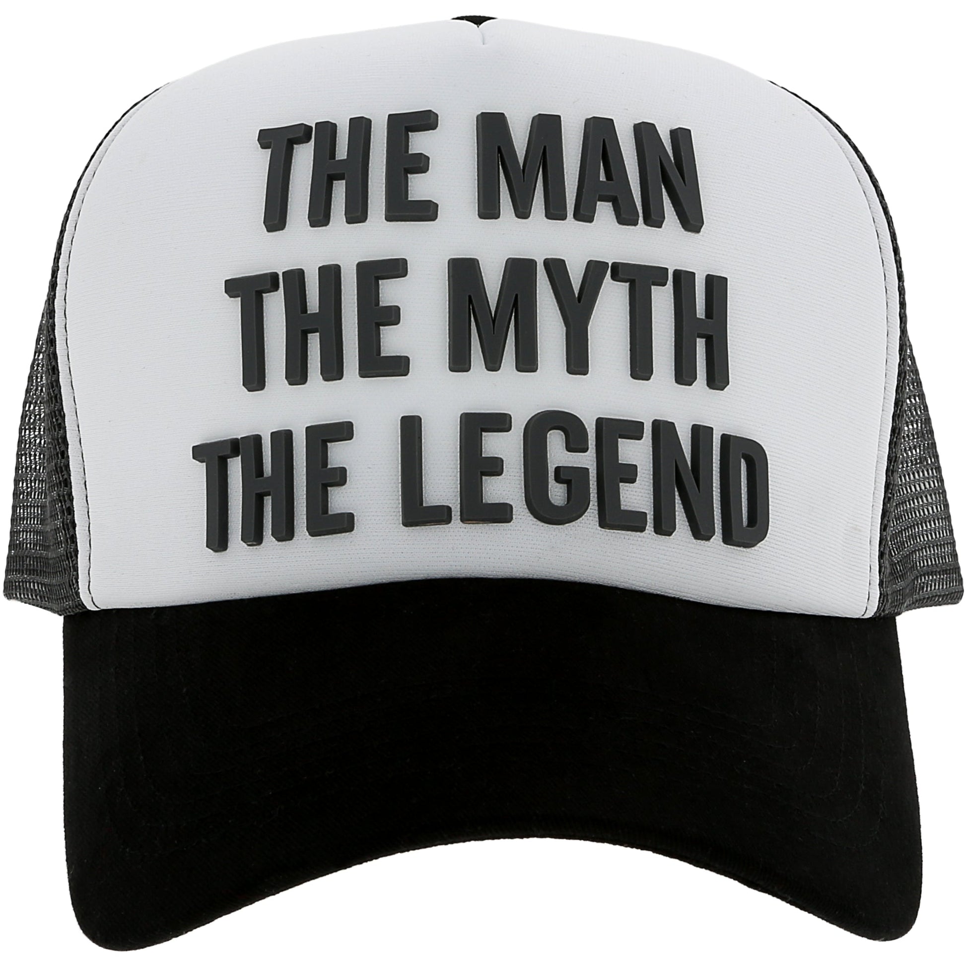 - The front side of the hat has a "The Man The Myth The Legend" 3D neoprene gray letters sentiment. The breathable construct makes this an awesome statement piece for a relaxed, humorous, and laid-back day.