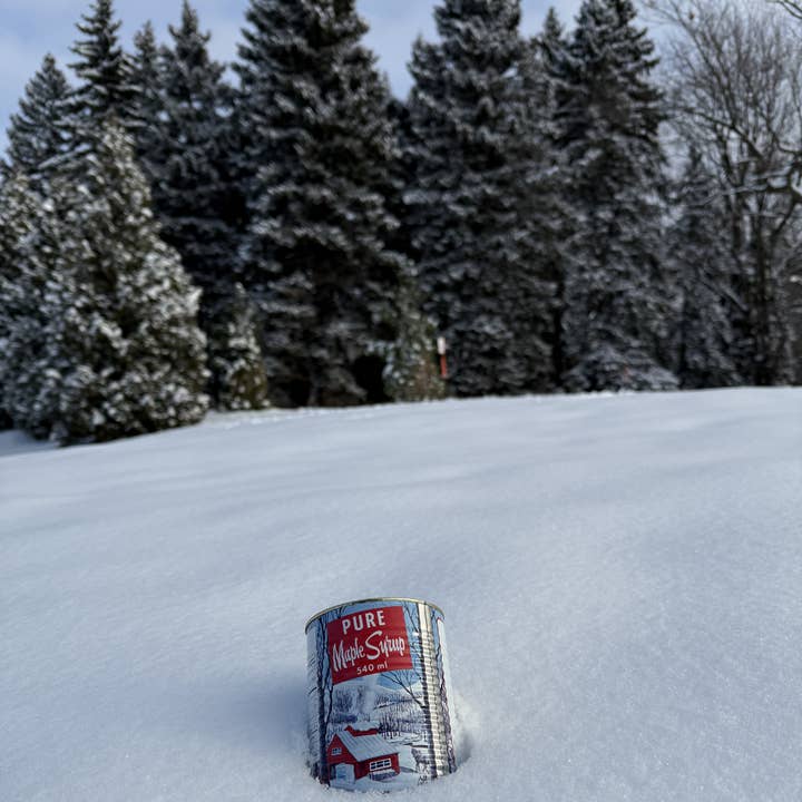 • Vessel: Oversized maple syrup can – iconic Canadian design