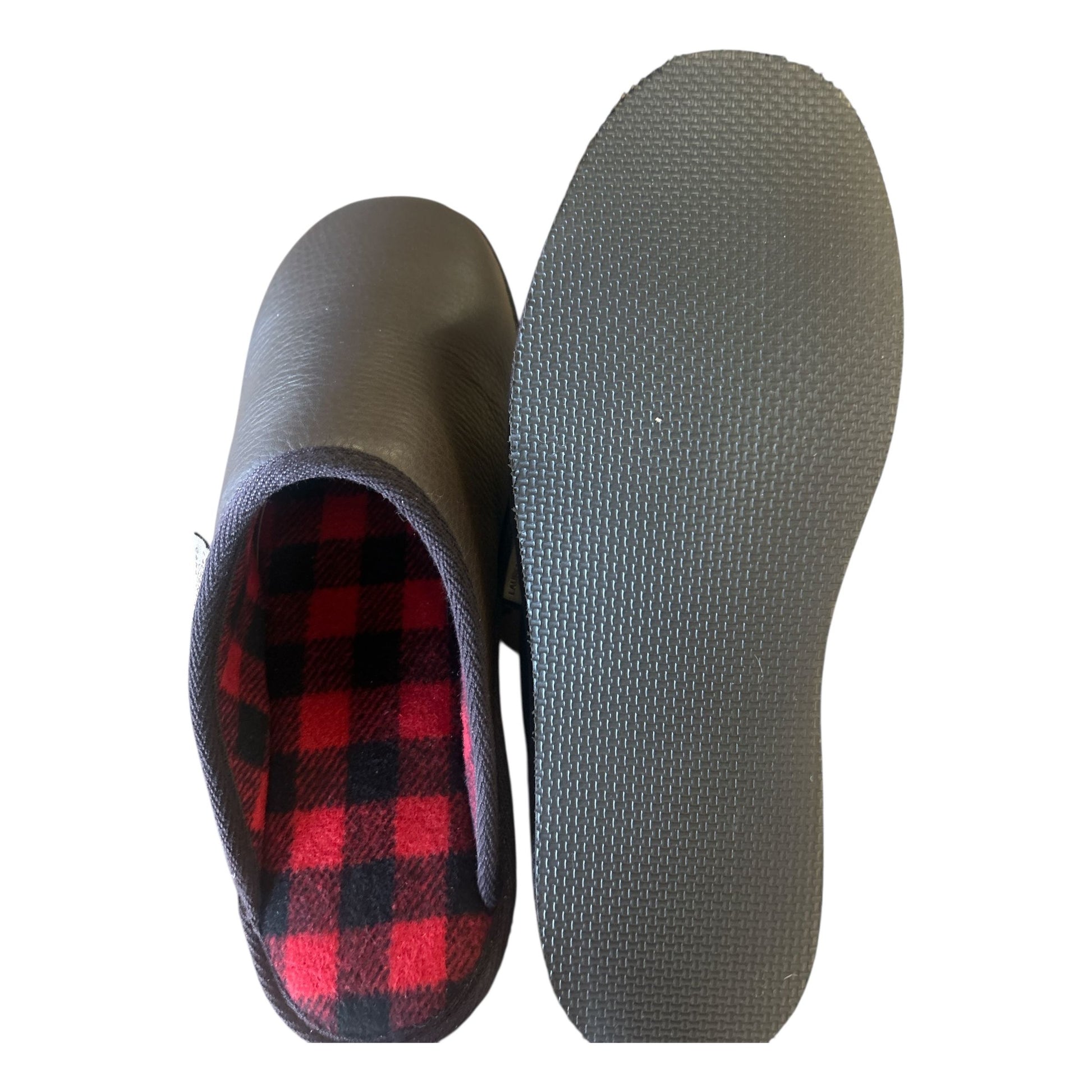 Our Plaid-Lined Mule Moccasins blend cozy charm with rugged durability. Made in Canada, each pair features a sturdy rubber sole and is wrapped in genuine moosehide leather—crafted to stand up to daily wear while keeping your feet warm. The classic red and black plaid lining adds a rustic touch of comfort, perfect for cabin mornings or relaxing at home.
