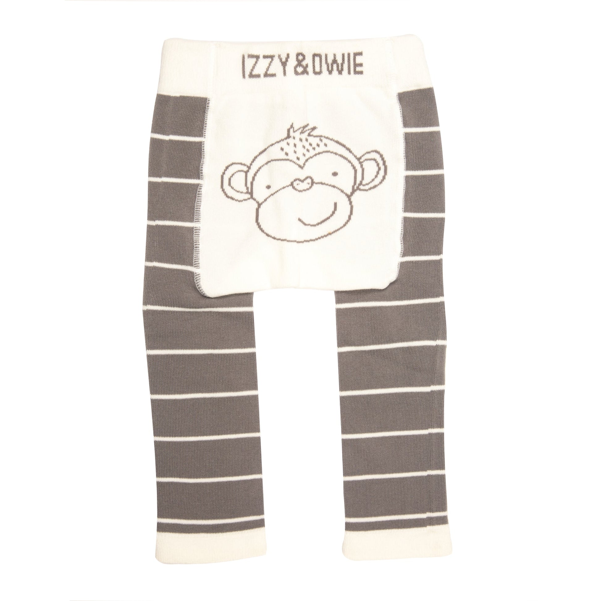 - IN-HOUSE DESIGN: "Izzy & Owie" text is sewn into the waistband, monkey image is sewn into the rear, and the stripe pattern of the main material covers the rest of the leggings.