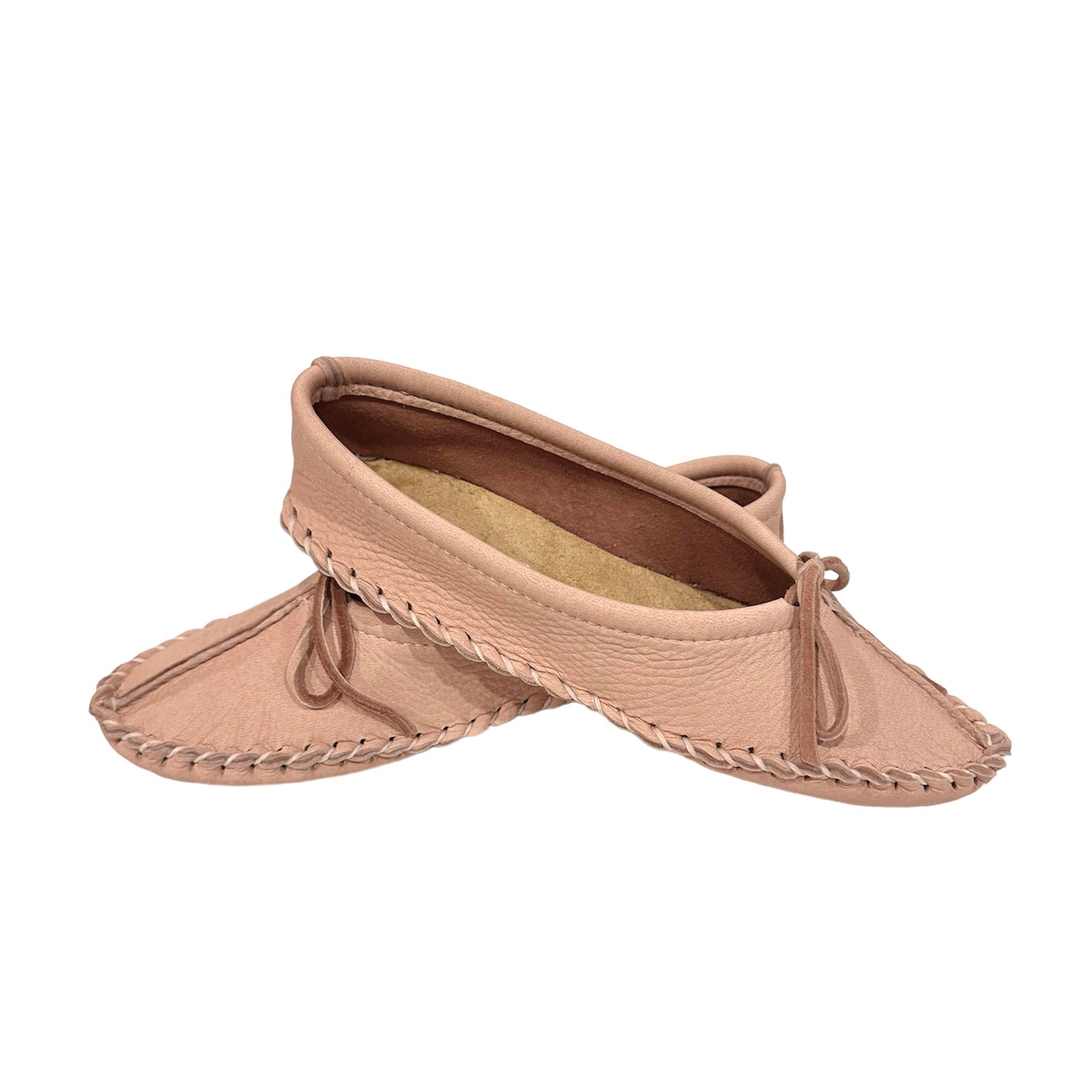 - Each pair is crafted with love, featuring a deerskin leather bottom sole for durability and flexibility.